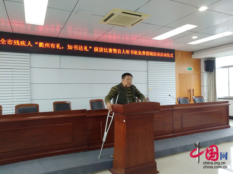 當天下午,在市殘聯舉行了全市殘疾人“衢州有禮,知書達禮”演講比賽,來自各縣市區的盲人朋友以演講比賽的方式分享自己生活中的故事,表達出自己的心聲,經過激烈的比拼,來自江山市的朱小平得到了96的高分,獲得了本次比賽的第一名,陳東財和汪南南分別獲得了第二名和第三名。市殘聯黨組成員、副理事長吳耀偉為獲獎者頒發了獎品。
