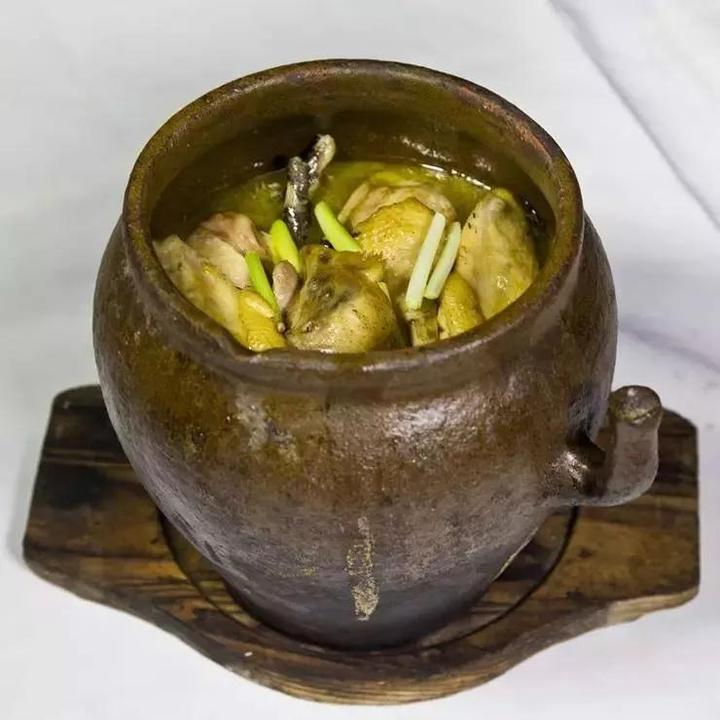 湯瓶雞用白炭炭火土法煨制,用開化清泉水,湯瓶燉制3個小時,底湯清鮮,雞肉極有韌性,肉質緊湊有咬勁,土雞的本味、香味醇厚濃郁,口感鮮滑,雞湯就一個字——鮮!寒冬里吃上喝上幾口鮮香的雞湯,暖胃又暖心,還可增強免疫力。
