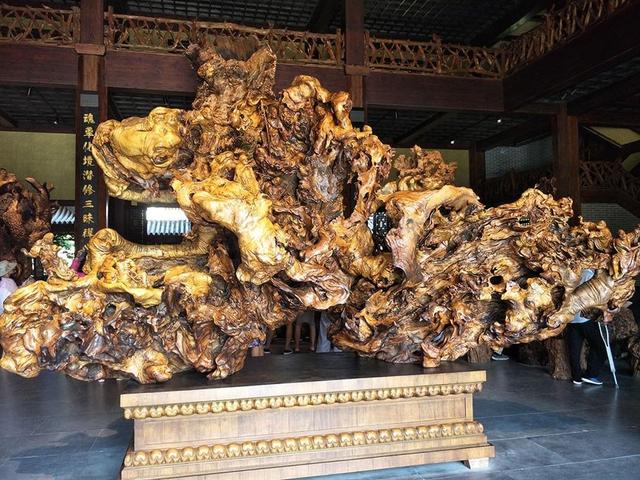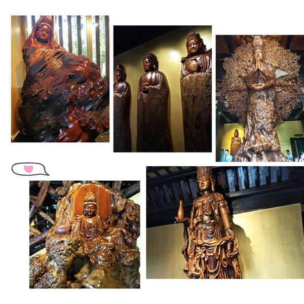 剛進博物館首先引入眼簾的就是靈山護法,它以千年香樟木根為樁,將各種法器神獸雕刻得十分逼真,充滿天趣美,是根雕藝術與佛教文化的完美結合?!?nbsp;