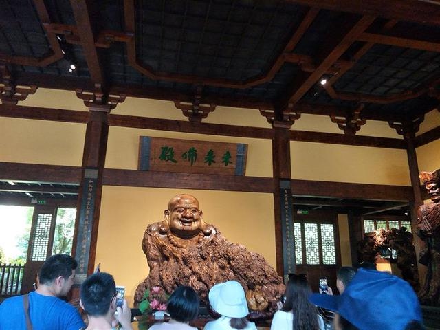 首先進入的是未來佛殿,而里面最具代表性的就是未來佛。未來佛是用黃金樟的樹根創作而成的,重達16噸,彌勒形象喜心,坐姿灑脫自然,預示著無限的慧心與善果?!?nbsp;