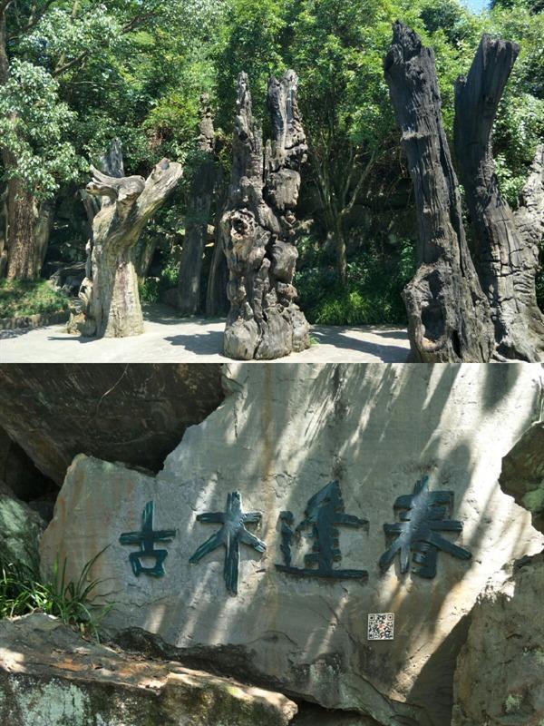從青梅園出來后又可看到一個雕塑群,稱為百木同春,充滿悲壯色彩,是浙江省首批生態環境教育示范基地,陳列有千年枯樹名木和陰沉木二百余件,是遠古的歷史縮影,經過藝術創作,以藝術作品獨特的感染力,成為錢江源頭環保的一面鮮明旗幟。
