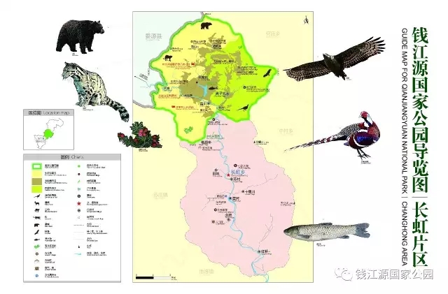 錢江源國家公園(齊溪片區)位于浙、皖、贛三省交界處,與安徽省休寧縣嶺南省級自然保護區毗鄰。地處錢江源國家公園北部,是錢塘江的發源地,轄里秧田、仁宗坑、上村、左溪、齊溪等5個行政村,11個自然村。錢江源頭自然生態環境獨特,素有“中國的亞馬遜雨林”之稱,森林覆蓋率97%以上,分布著錢江源頭、蓮花塘、蓮花溪、天子湖、九曲灘、楓樓坑、大峽谷、中山古村落、楓嶺頭古村落等游憩點及人文景觀40余處。其中有國家I級重點保護野生植物南方紅豆杉、銀杏2種,國家Ⅱ級重點保護野生植物連香樹、長柄雙花木等21種。特別是長柄雙花木群落之大,分布之集中,在全國罕見。有國家I級保護動物白頸長尾雉、黑麂、云豹、豹等4種,是兩種國家一級重點保護動物黑麂、白頸長尾雉的主要分布中心。