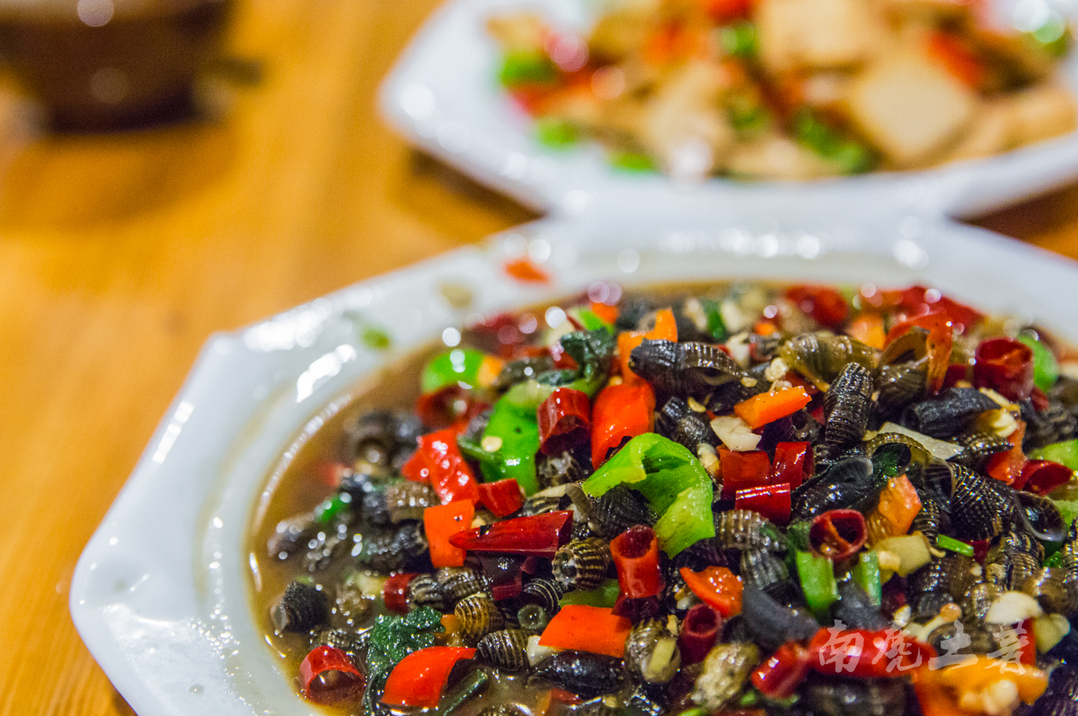 要說味道最鮮美的當屬錢塘江源頭鄉間小溪活水里的青螄了,清水螺螄又稱青絲,錢江源十大特色名菜之一,上了央視的“舌尖上的中國”。因為青螄的生長對水溫、水質和周圍環境的要求很高,水一定是要活水,而且不能太深,也不能有污染,它與圓圓的田螺味道自然相差很多。生長水域的水質越好,青螄的個頭越大,顏色越黑,腸子越綠,吃起來才越有味道。