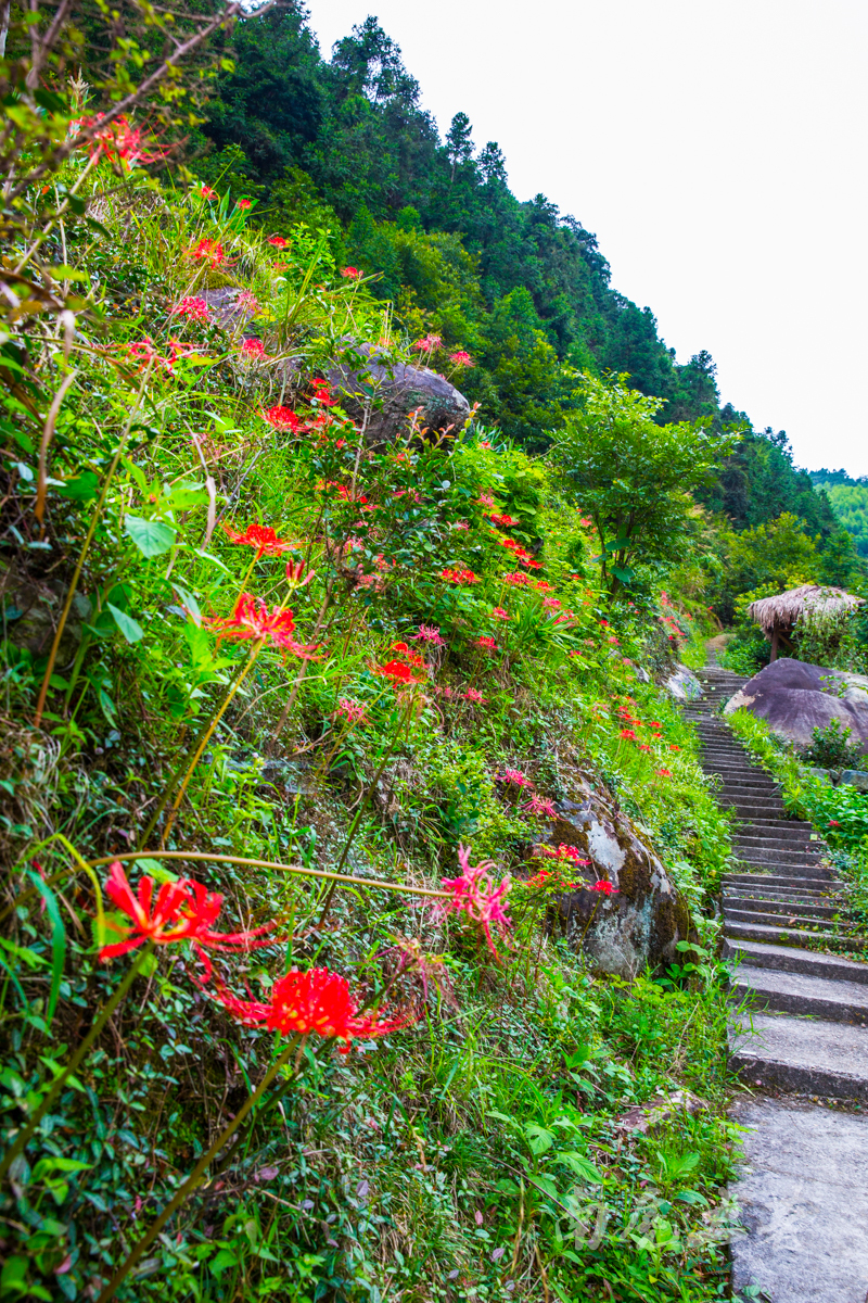 臺回山在長虹鄉的西北部,因青山綠水,云霧繚繞和春天的油菜花在近幾年名聲鵲起,從開化縣城行車大約1小時到長虹鄉,再有6公里就到臺回山腳。沿途的彼岸花開滿兩旁,星星點點如煙花綻放。