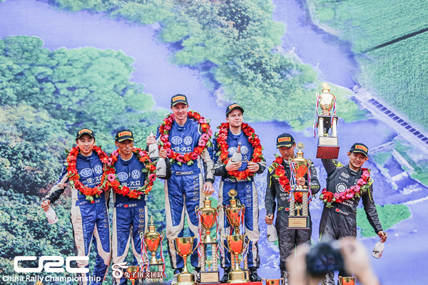 After a fierce competition, the No. 8 car from the Faw-Volkswagen Rally Team driven by Karl Kruuda and Dale Moscatt emerged as the champion. The No. 9 car from the same team driven by Chen De'an and Wangyang claimed the second place, and the No. 3 car from Subaru Rally Team China driven by Fan Gaoxiang and Yue Cailei placed third.