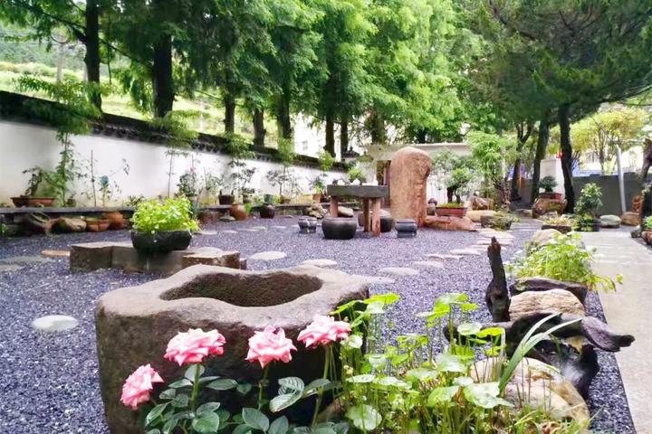 彤弓山居包含了四個主題院落,分別為“農舍”“書舍”“喜舍”“禪舍”,每一個院落都有不同的主題及特色。彤弓山居?農舍主打農耕文化。院落里陳列了不少傳統生活農具和生活用具,犁、耙、鋤、風車、水車……讓人不禁回憶起兒時的味道。春賞百花秋賞月,夏享涼風冬觀雪。來彤弓山居,看風花雪月,回歸本真生活。