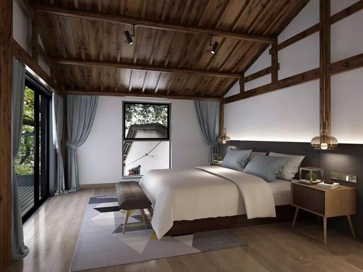 棲里·驚鴻,翩然端立在海拔700多米的竹山上,宛如明珠瑰玉。不同于粗糙的農家樂,作為七里鄉精品民宿的第一張名片,它就是最惹眼的極美一瞥。旁植千年銀杏古樹,每到深秋,金色葉子會灑滿山路和屋頂。再不遠處,有一條櫻花大道和百畝梅花園,無論春秋,冬夏,都是燦爛明媚的好風光,一樣芳華。