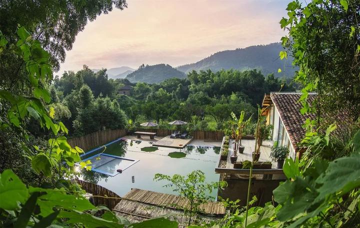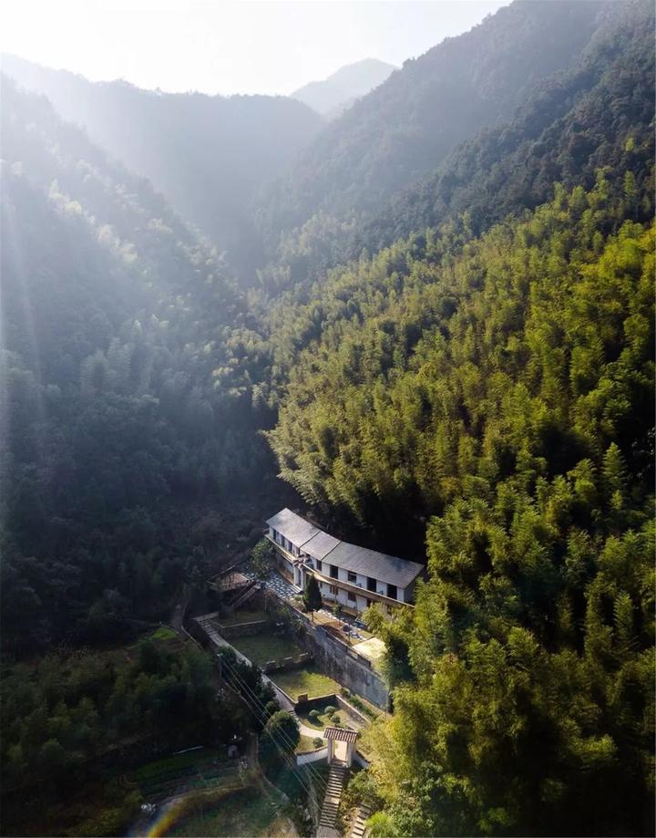 仙草記民宿依山而建,就像它的名字一樣,充滿了神秘、詩意,還有仙氣。三面臨山,一面環水,在竹林和大山的深處,屬于獨居,這半山坡的位置只有這一間民宿和建筑,不受外界的任何驚擾。仙草記依山而落,臨水而憩,被四周的竹林綠海層層包圍,這里的所有景致都是那么的自然,清新,風景絕美,剛一進入民宿的院門便可以聽到潺潺流水的聲音,使人感覺意境超然。