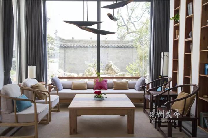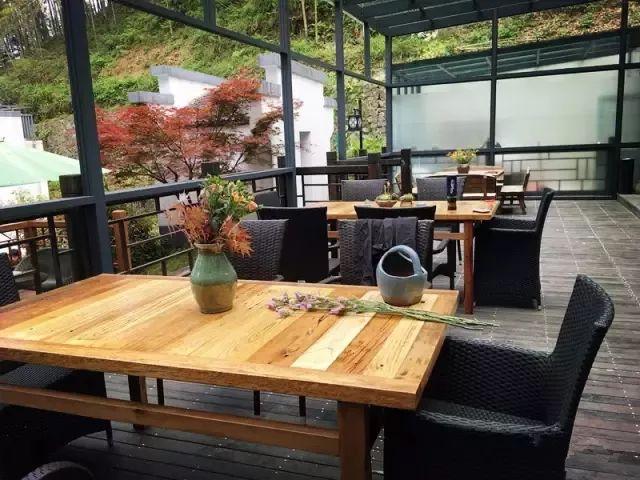 民宿門口一盞大大的茶壺,是它獨特的迎客方式。穿過“茶壺”,白墻黛瓦的紅茶坊建筑既保留了徽派的江南風格,又在原有基礎上進行了局部改造,加大的窗戶,挑出的屋檐,小而精致的陽臺,都使建筑更具立體感。