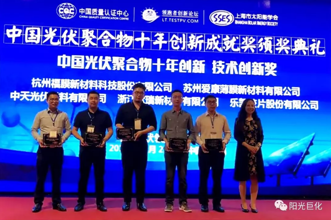 5月25-26日,2018第五屆光伏聚合物國際大會在上海隆重召開,巨化集團旗下的歌瑞公司憑借在技術創新上的優異表現,榮獲“中國光伏聚合物十年創新技術創新獎”。