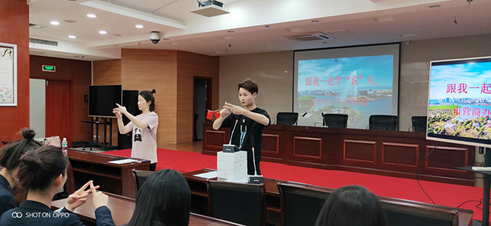 4月18日下午,市殘聯跟我一起學“說”禮系列活動走進市營商辦,開展行業窗口手語培訓,來自市營商辦的150余位工作人員參加了本次培訓。