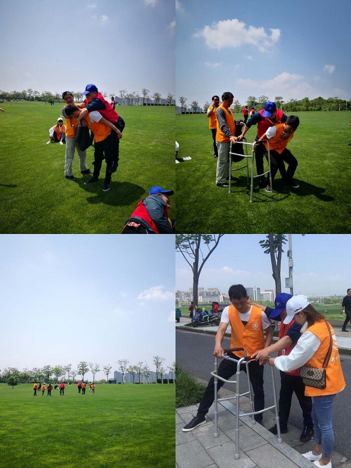 今天的大草原不僅有綠色,有紅色,還有那特殊的橘黃。開化陽光公益的志愿者身著橘黃色的馬甲,耐心細致地為身體不便行走的陽光家園成員提供幫助,讓他們出游不再有障礙。