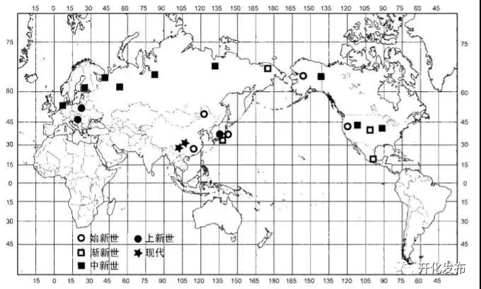 ▲杜仲科的地史分布和現代分布 圖源:周浙昆