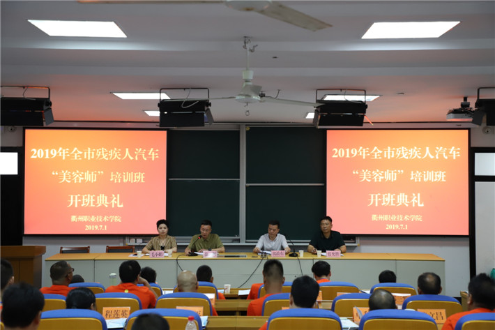 2019年7月1日上午,由衢州市殘疾人聯合會主辦,衢州市職業技術學院(衢州農民學院)承辦的首期殘疾人汽車美容師培訓班在衢州職業技術學院辦公樓階梯教室舉行開班儀式。
