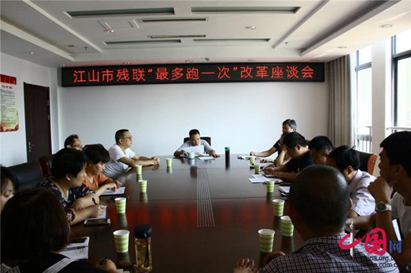 為深入推進“最多跑一次”改革,有效解決殘疾人辦事“中梗堵”問題,7月26日,江山市殘聯召開“最多跑一次”改革座談會。副理事長周文凱主持會議。