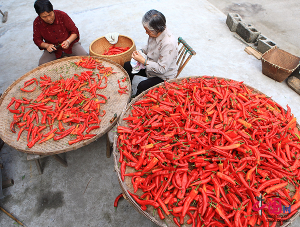 據了解,采摘時間過后,一些長度相當、火紅飽滿的辣椒,還被身手麻利的高升村民綁成一串串,掛在了門頭、外墻和窗檐,村民們將對美好生活的期盼,寄寓于這些辣椒串里,祈愿日子可以過得紅紅火火、有滋有味。