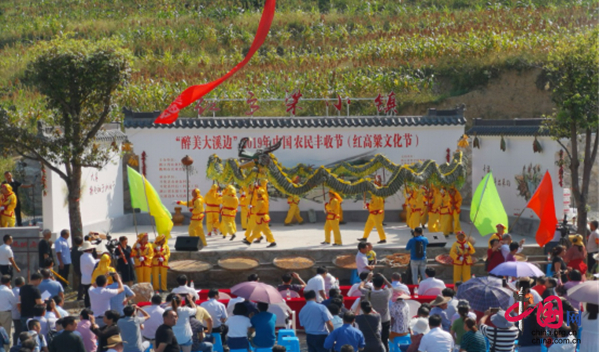 日前,筆者在大溪邊鄉上安村發現,半山腰上歌聲鼓聲不絕于耳,這里正早早地開始迎接2019年中國農民豐收節。小山村的節日讓四方游客慕名而來,聽著祝酒歌、賞著紅高粱,頓時讓自己回到了孩提時代。歌伴舞《紅紅高粱溝》、舞蹈《共園中國夢》詩朗誦《我愛你,大溪邊》贏得了陣陣掌聲,一首《九兒》更是把眾人帶入“紅高粱”那部劇中。搶答環節吸引群眾們涌向舞臺,現場氣氛熱鬧,高潮迭起。