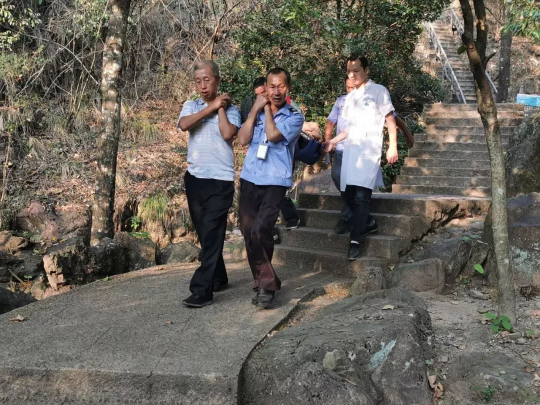 據了解,事發當天下午三點左右,景區員工廖向明在衢江天脊龍門景區飛天索橋處發現一老人身體不適,立即向景區經理張玉紅匯報情況,景區經理接到匯報后立即撥打120急救電話,同時安排附近保安王建明、陳樟龍與景區醫生胡賢林攜帶擔架及相關急救藥品趕至飛天索橋,并前往下山途中接應,將老人運送下山。景區員工運送游客下山至救護車處,僅花費50分鐘時間。