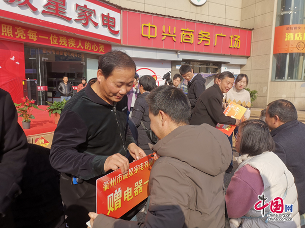 捐贈儀式上,衢州市誠星家電向20名困難殘疾人捐贈了電視機、消毒柜、熱水器等各類家用電器20件,愛心惠殘補貼近10萬元。