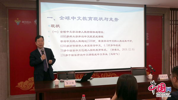 會上,北京語言大學漢語國際教育研究院常務副院長吳應輝教授針對全球中文教育主題展開演講。隨后,參會人員開展了分組討論,討論主要圍繞孔子學院質量標準體系建設、孔子學院與職業教育、孔子學院與國際中文教育、孔子學院與承辦院校國際化的聯動、孔子學院本土化發展等議題進行,重點聚焦推進孔子學院提質增效、改革發展。