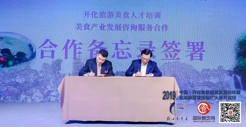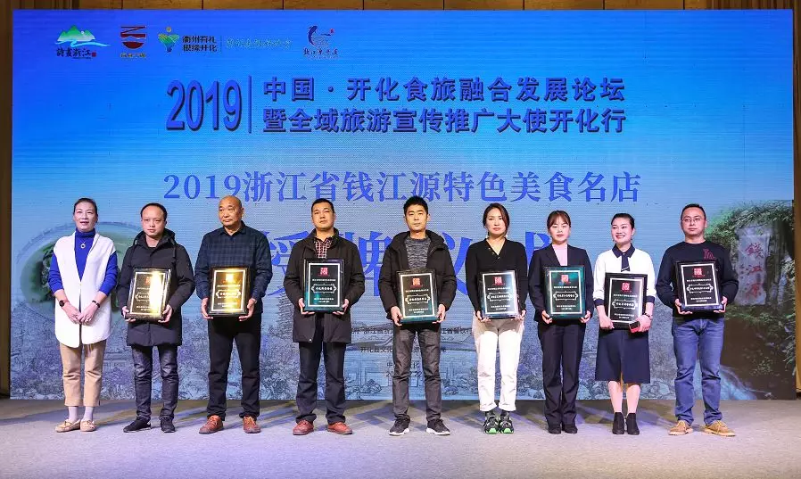 活動現場,開化與省餐飲行業協會簽署開化旅游美食人才培訓及美食產業發展咨詢服務合作備忘錄;縣政協副主席、工商聯主席谷聲贈予了6位嘉賓“全域旅游宣傳推廣大使VIP卡”;浙江省浙菜文化研究院授予了8家開化地方餐飲品牌企業“浙江省錢江源特色美食店”榮譽證書。