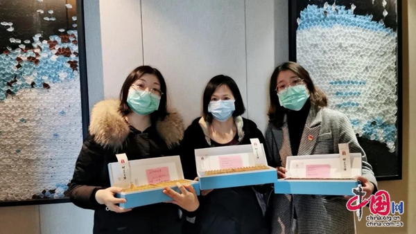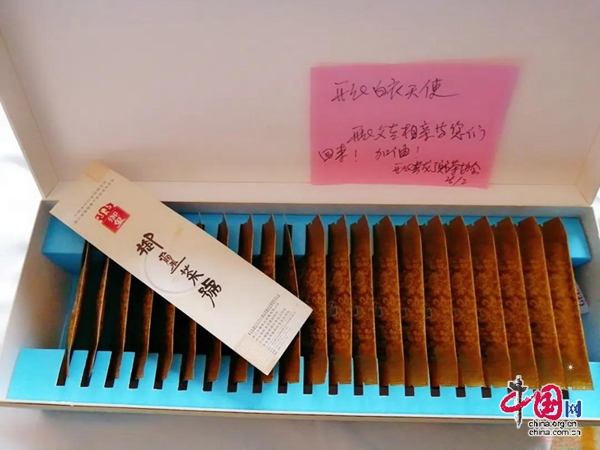 徐慧和隊友們收到的龍頂茶,就是開化縣龍頂名茶協會代表36萬開化人民送給馳援武漢戰疫一線最美逆行者的春天問候禮包。每份禮包里的20包 “開化龍頂”名茶,是開化今春最早、最珍貴的頭采春茶,由近20位采茶工花了5個多小時精心采摘,并由省級非物質文化遺產傳承人連夜炒制而成,經“縣新冠肺炎”指揮部統一安排空運至武漢。