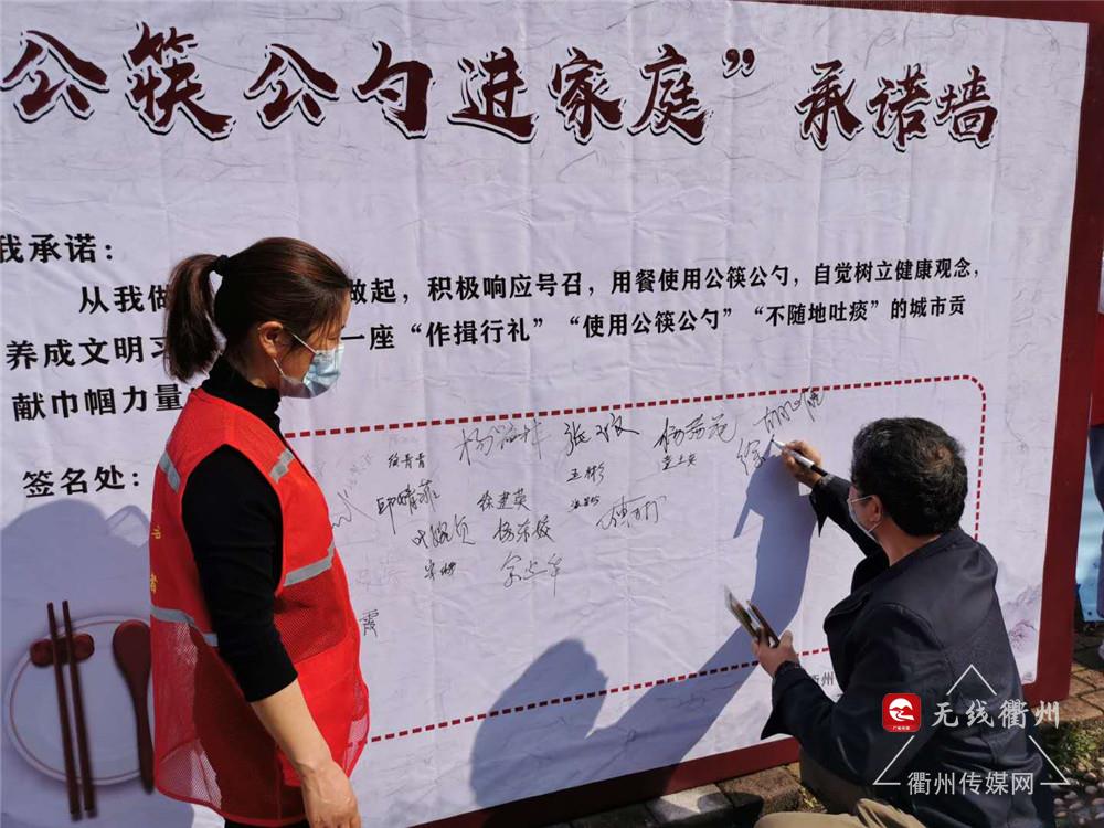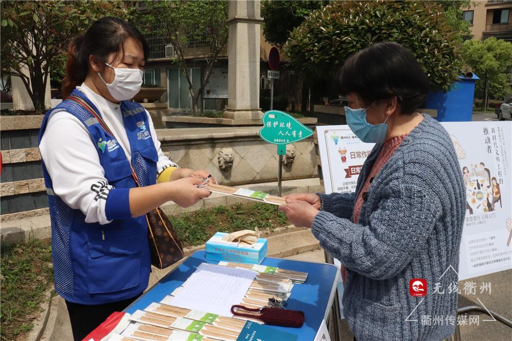 工作人員在每個小區張貼“公筷公勺”“作揖行禮”“不隨地吐痰”等公益廣告,在通策蘭堡、府東苑等小區開展“一筷一勺見文明”“公筷公勺進家庭”活動,并在各大微信群和衢江花園小區開展“見面不握手,改行作揖禮”視頻教學和手把手學......