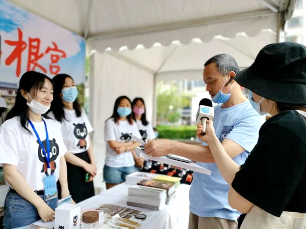 在活動現場,印有“北故宮、南根宮”的游覽圖冊和文創產品也成為了“搶手貨”,近萬名游客通過微信掃碼關注了根宮佛國文化旅游區微信公眾號。