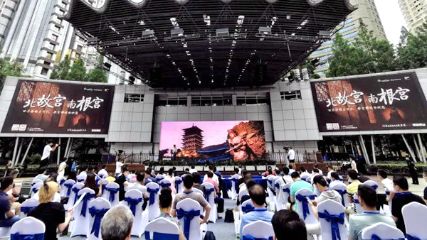 在啟動儀式主會場兩側的兩塊大屏滾動播放“北故宮、南根宮”的精美畫面和視頻。所有工作人員工作證、記者媒體證、領導嘉賓的嘉賓證及儀式的主背景上都是根宮佛國文化旅游區的圖案。