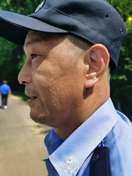 頂著烈日,冒著37度的高溫,徐永勝帶領另一名執法輔助人員吳金鎧拎著幾桶油漆、幾把刷子、兩雙棉紗手套就上路了。路面的高溫炙烤著,當空的烈日暴曬著,汗水浸濕了制服,也滴灑在了每一道車位線上。一上午,老徐和助手共施劃車位12處,施劃面積90余平方米??粗粋€個有著自己“汗水味”的車位,老徐露出了樸實的笑容,笑呵呵的說:“熱點不算什么,為大家能停車盡點自己的力量!”