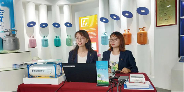 ▲巨化集團開展線上直播,網上展示制冷劑和壓縮機系列產品。