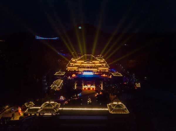 本次大型組燈以根宮夜宴3D燈光秀為背景,以華夏根文化景區漢唐建筑為依托,通過非遺燈彩、夢幻光影、科技互動和動感光束等燈光,打造燈光秀,祝愿我們的祖國繁榮昌盛,盛世太平。