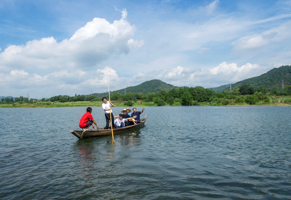 ▲專家在招賢古渡體驗撐船擺渡