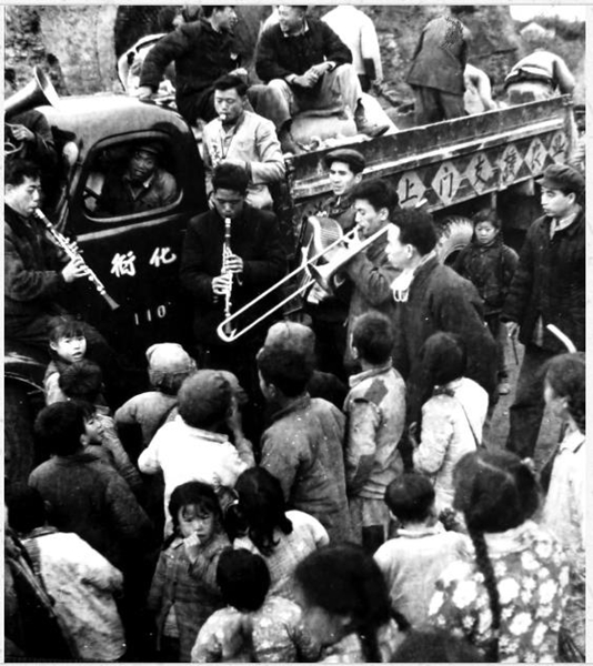 (1962年11月21日,合成氨分廠將生產出首批合格的硫酸銨,敲鑼打鼓地用汽車送往農村,支援農業建設。)