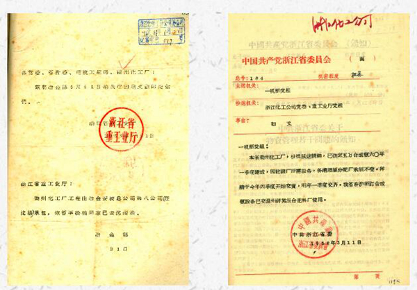 要建設化工廠,對技術水平經驗有著極高的要求。為此,建設人員采取自己研究和“請進來教、派出去學”的辦法,克服重重困難。如電石爐裝置30米高的煙囪,在砌完第一層后,因物資未到無法進行施工,只能創新施工方法,從三層樓開始砌,不僅保質保量,還提前一個星期完工;90米高的硫酸混凝土大煙囪,參照外地經驗,經過83個晝夜奮戰完成;安裝螺旋式的大氣柜,采取請進來教、派出去學的辦法安裝……在巨化開始土建施工時,設備問題也同樣提到了非常重要的位置,能否保質保量并及時采購到所需的設備、材料,成為巨化建設進程的關鍵問題。當時全國新上馬的項目很多,設備、物資非常缺乏,省里領導高度重視,處處為巨化開綠燈。省重工業廳專門為巨化所需的關鍵設備,如高壓閥門、管件、高壓螺絲等,安排杭州制氧機廠、杭州機床廠、寧波動力機廠等幾個大型機械廠制造。同時,凡是分配到我省的材料、設備,首先滿足巨化的需要。