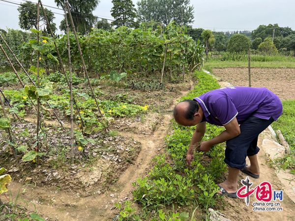 6月17日清晨,天空陰云密布,雨點隨時將會落下,聽力殘疾人老陳像往常一樣早早地來到衢州市柯城區新新街道殘疾人之家,穿上工作服以后從側門走到菜園內除雜草。