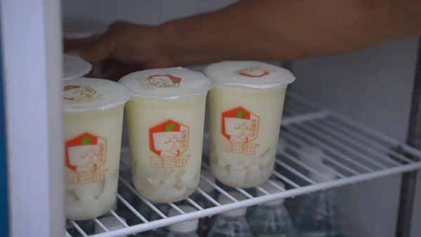 愛心企業也為愛心冰箱添置綠豆湯、水晶糕等消暑物品,為戶外勞動者獻上自己的一份愛心。