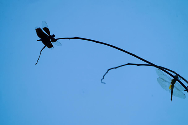 7月26日,筆者在浙江省龍游縣湖鎮鎮省級美麗河湖白鴿湖畔,發現一只黑麗翅蜻停在一根枯枝上,逆著陽光望去,宛如一只帶著翅膀的童話精靈走到了現實中。