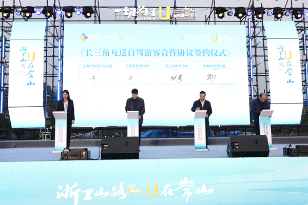 “福也,好??!福也,好??!”隨著一聲聲喝彩,活動正式拉開帷幕。本次活動推介了長三角自駕游線路,發布了長三角自駕游示范目的地和長三角示范露營地,為廣大游客提供權威性、有價值的旅游線路參考,三省一市旅游協會就長三角互送自駕游客合作協議進行了簽約?;顒蝇F場還發布了“百縣千碗”常山鮮辣美食,展示了2021年浙江文旅總評榜共享共富十佳自駕風景道及常山縣自駕游線路。