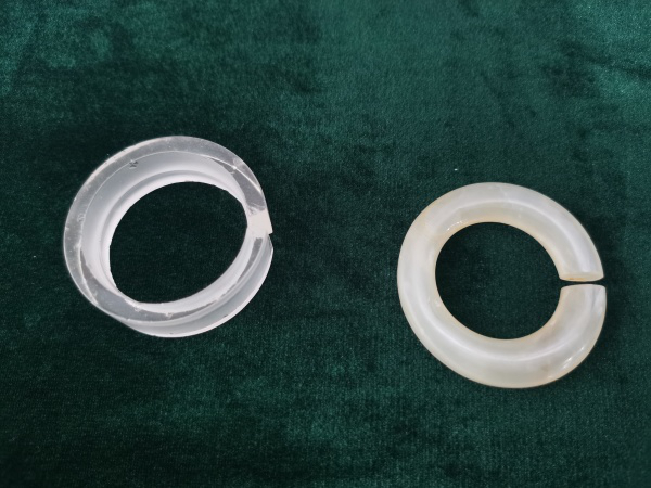 這是孟姜一號墓出土的部分玦。左為水晶玦,右為玉髓玦。新華社記者馮源攝