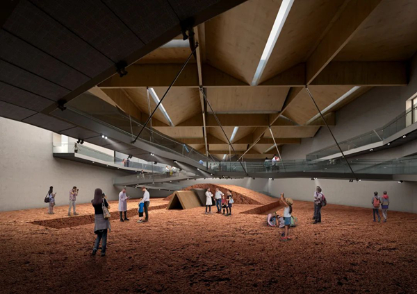 “開卷大地”:展館的主體象征土地的挖掘,屋檐開展表達開卷之意。充分彰顯項目位于“一個有文物被挖掘發現的地方”的與眾不同之處。整體體現: