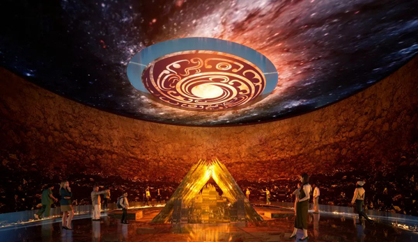遠古印記、古今對話、天地共生、遺址敘事、多元門戶。展館整體以凝練的建筑語言,表達人類千年以來,與天地、神明對話愿景的歷史內涵。