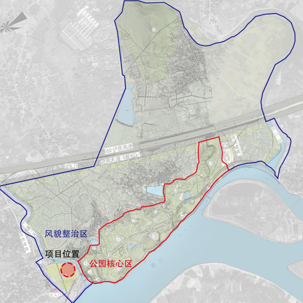 博物館的選址位于遺址公園核心區西側,處于遺址公園風貌整治區內,南部毗鄰沿江公路,東側以衢江支流邵源溪為界,西側為規劃道路,用地面積約 38000 ㎡。該處與衢江城區隔江相望,距衢江城區約 9公里,后期霞飛跨江大橋建成后將縮短至 5公里,交通便利。