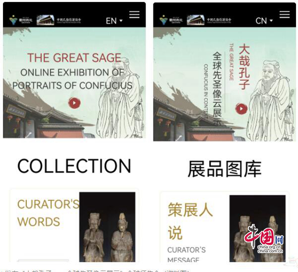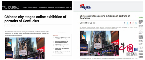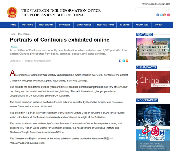▲國新網刊發英文稿,《Portraits of Confucius exhibited online(孔子畫像在線展出)》