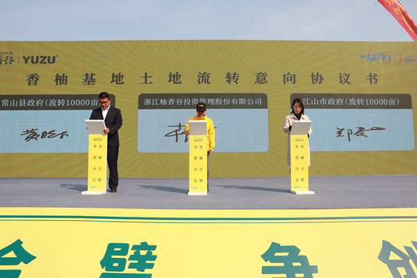 據悉,此次柚香谷還與江山市長臺鎮、新塘邊鎮簽訂了香柚基地土地流轉意向協議書,實現了香柚基地首次向常山縣外擴張。此前,柚香谷已在常山6個鄉鎮(街道)26個行政村村打造香柚基地1.2萬畝,培育香柚85萬株,去年向農民支付勞務工資達3000多萬元。