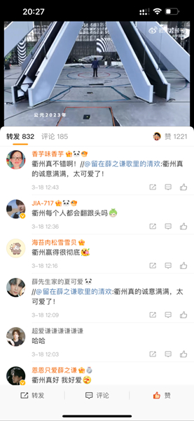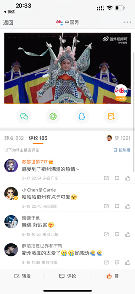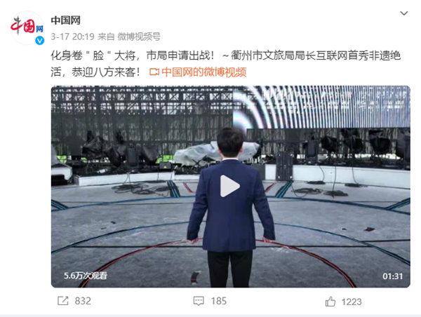 國內平臺上,中國網微博發布了該短視頻,播放量5.6萬人次。有網友評論:衢州真是誠意滿滿,太可愛了!