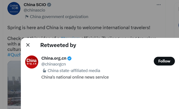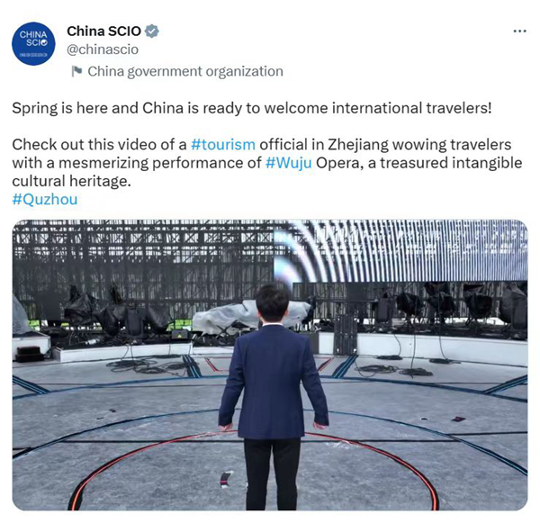 3月17日,衢州在Facebook平臺的官方賬號“Quzhou,China”發布了該短視頻,立即引發關注。國務院新聞辦公室的推特賬號(China SCIO)關注并發布了該短視頻。中國網推特賬號也轉發了該視頻。