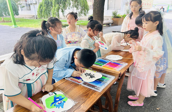 9月28日上午在衢江區第一小學蝴蝶大道上,“小毛蟲們”身著漢服,妝發精致,國韻滿滿。臉上洋溢著自信的笑容,邁著優雅的步伐,展示了“著我漢家衣裳,興我禮儀之邦”的別樣風采。本次主題活動內容豐富多彩:有繪紙扇、玩游戲、猜燈謎、做月餅……希望能通過這樣一系列的民俗活動,進一步弘揚中華民族的傳統文化,激發同學們的愛國熱潮。在活動現場,孩子們將自己獨特的創意融入扇面。一把把精美絕倫,融入了中國傳統文化意境美、詩意美以及亞運元素的紙扇新鮮出爐。