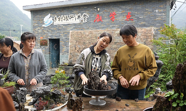 青石鎮硯瓦山村的徐衛建是推出培訓券后最早接受培訓的農民之一,培訓的內容是石盆景制作。青石鎮硯瓦山村景觀石資源豐富,至今已有上百年的采石歷史?!半m說采幾塊石頭賣了就能賺錢,但是掌握了石盆景制作之后,產品價格能翻上好幾倍?!毙煨l建說,參加培訓之后,他一直在石產業深耕,經過六年積累,創辦了自己的公司?,F在公司除了銷售石盆景產品外,還接受戶外的木結構涼亭等園林配套產品定制。