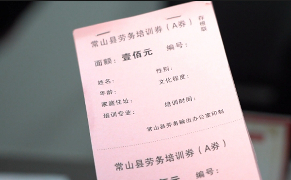 “推出培訓券制度之前,農民培訓一直存在走形式的情況,農民對培訓項目不喜歡,培訓效果不明顯?!鼻嗍偢辨傞L鄢倩倩介紹,為了做實農民素質提升工作,2003年常山創新推出勞務培訓券制度,根據培訓計劃向農民發放面值分別為50元、100元的兩種培訓券。